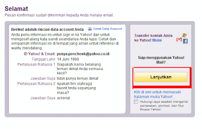 5. Tekan lanjutkan untuk mengkonfirmasi pendataran email yahoo anda, dan anda sekarang sudah mempunyai email yahoo.