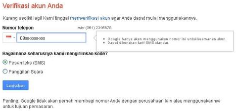 - Pada halaman selanjutnya anda diminta untuk memilih cara mengirimkan kode ke no hp anda, pilih pesan text (SMS) dan klik LANJUTKAN.