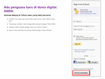 - Id Yahoo! dan Email: Anda disuruh membuat id anda seperti gambar diatas, jika tidak bisa coba diganti id tersebut.