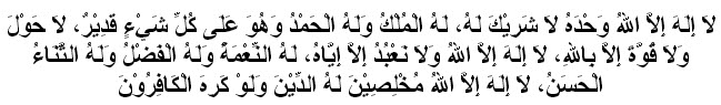 Laa ilaha illallah wahdahu laa syarika lah, lahul mulku wa lahul hamdu wa huwa ‘ala kulli syay-in qodiir